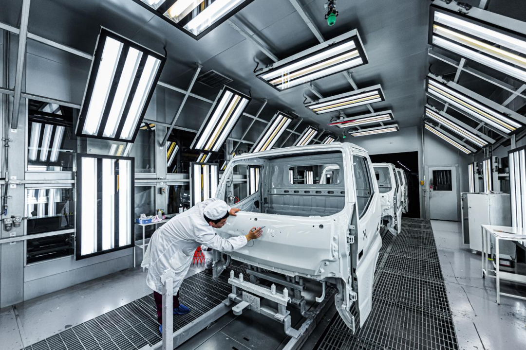 在OG视讯1卡的1号基地中,智能化环保型车身冲压线可实现全封闭作业,智能化车架制造通过技术和工艺双重手段控制车间噪音源,大大降低噪音污染,避免员工的听力损伤;高品质自动化驾驶室拼焊线,减少人工作业危害;绿色智能自动化涂装线在国内率先应用水性B1B2与水性单涂层共线工艺,单台能耗和“三废”排放都达到国内领先水平;高效智能绿色总装车间,实施智慧物流,极大改善了作业场所环境,从源头上强化健康管理和职业危害防治。